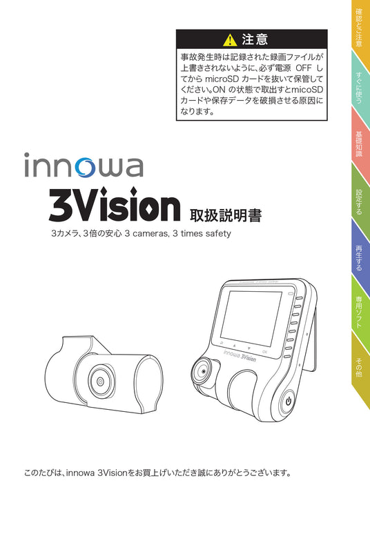 innowa 3Vision の取扱説明書 (マニュアル)をPDFファイルでダウンロードできます。本機のご利用前に、このマニュアルをよくお読みの上、説明の通り正しくお使いください。