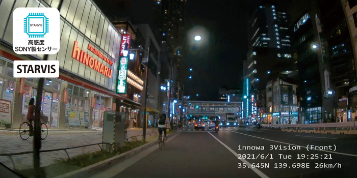 ■フロントカメラは SONY STARVIS(フロント) CMOSイメージセンサーを採用しました。 STARVISの特徴である暗い場所での画質向上を最大限に生かし、夜間の画質を飛躍的にアップさせました。