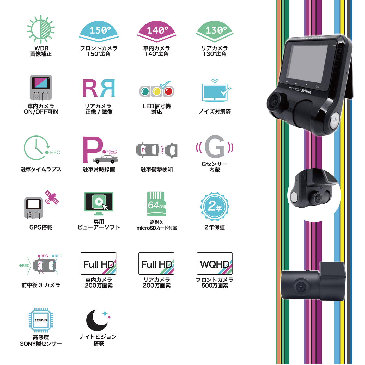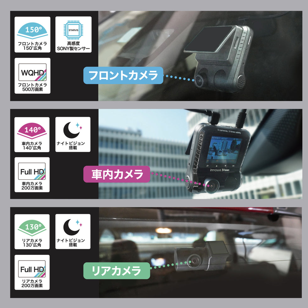 innowa (イノワ) 3Vision 前中後3カメラ同時録画 ドライブレコーダー