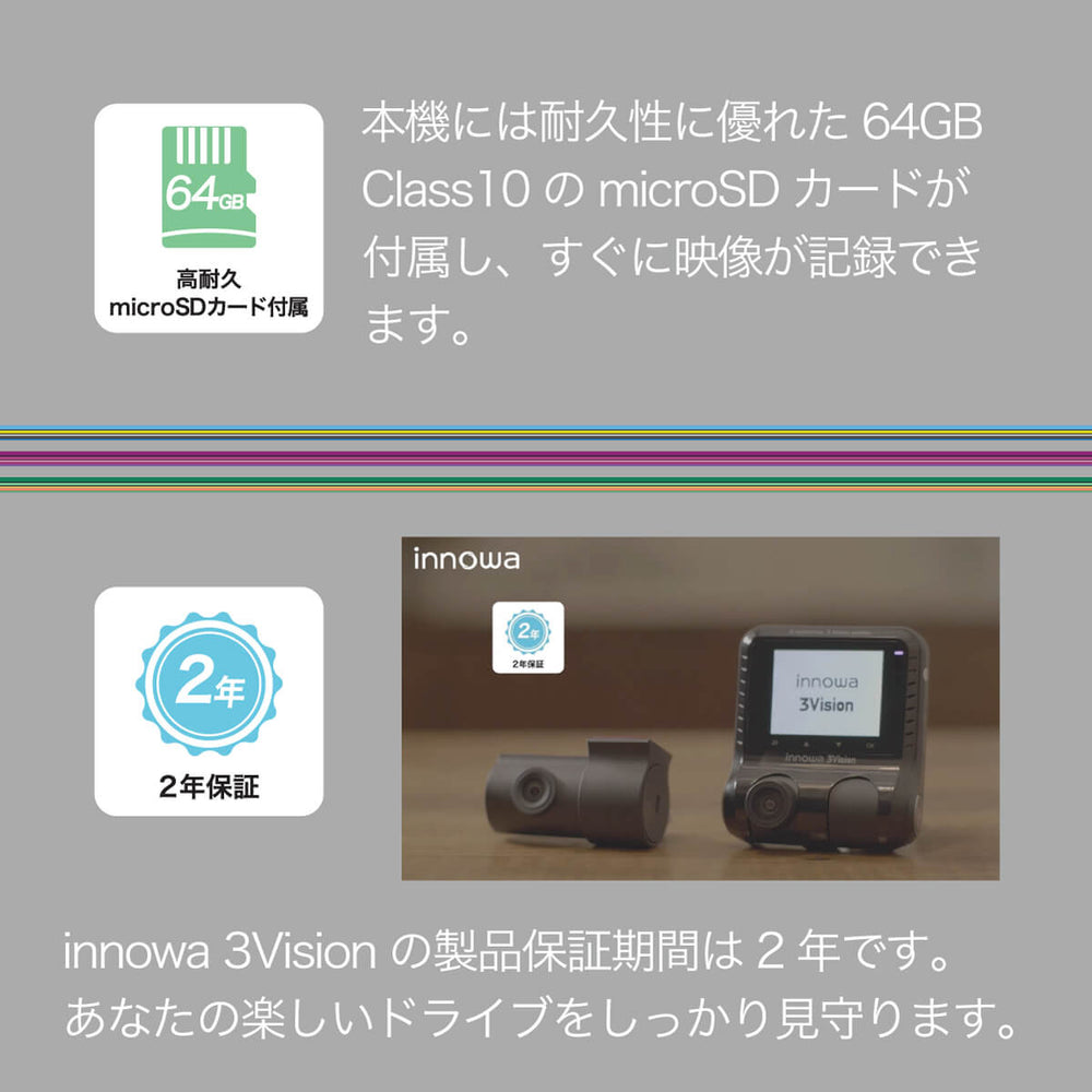 innowa 3Visionの製品保証期間は2年です。あなたの楽しいドライブをしっかり見守ります。