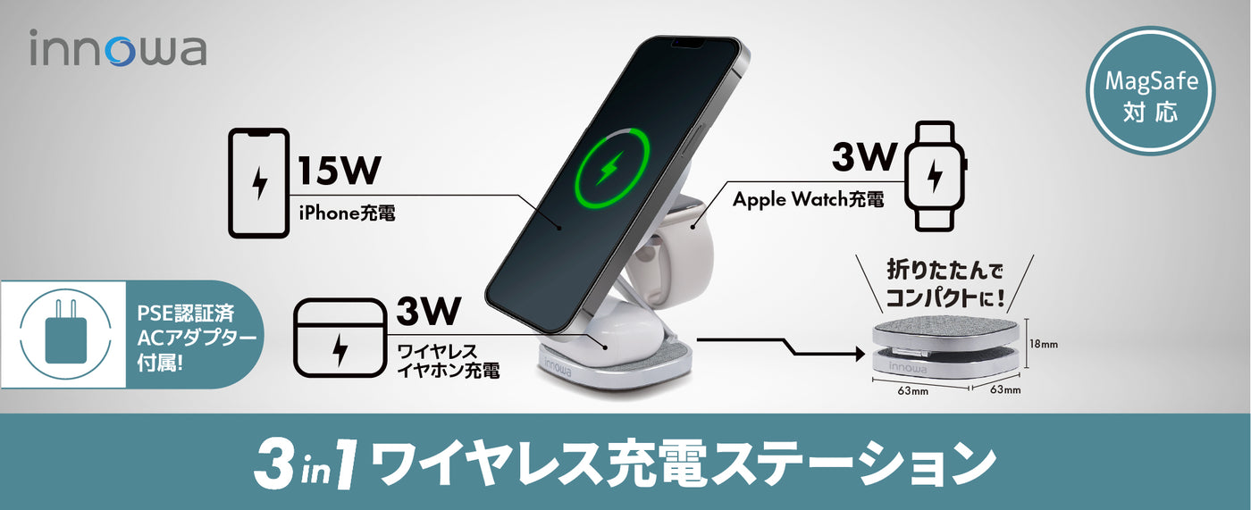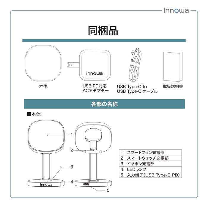 | モデル名 | innowa 3in1 ワイヤレス充電ステーション |