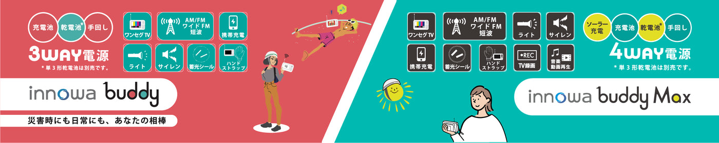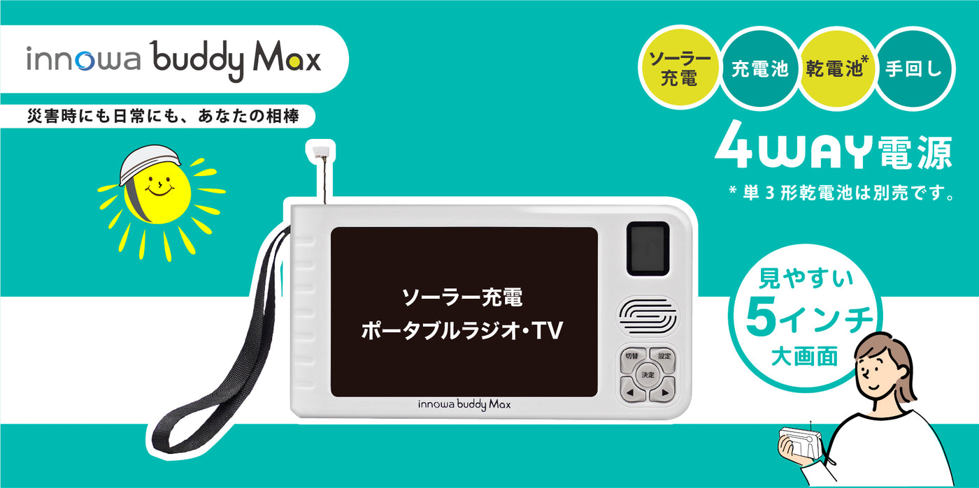 innowa buddy Max ソーラー充電 手回し ポータブルテレビ・ラジオ 4WAY電源 LEDライト モバイルバッテリー 防災 アウトドア