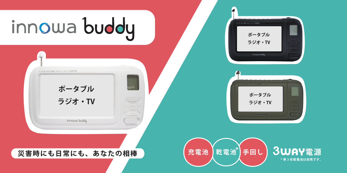 innowa buddy (Black) 手回し ポータブルテレビ・ラジオ 3WAY電源 LEDライト モバイルバッテリー 防災 アウトドア