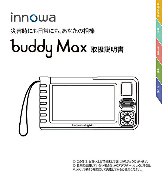 innowa buddy Max の取扱説明書 (マニュアル)をPDFファイルでダウンロードできます。本製品のご利用前に、このマニュアルをよくお読みの上、説明の通り正しくお使いください。