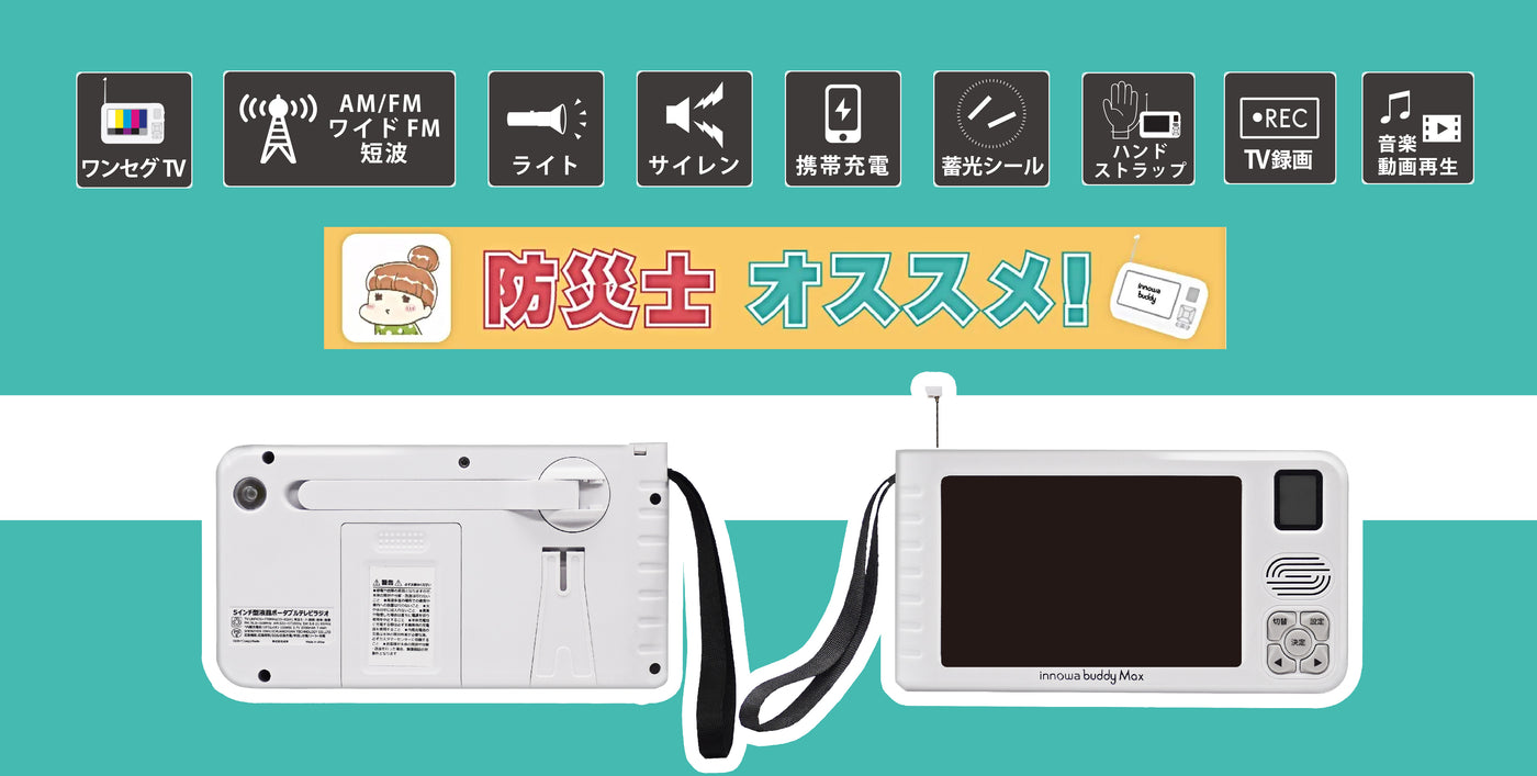 innowa buddy Max ソーラー充電 手回し ポータブルテレビ・ラジオ 4WAY電源 LEDライト モバイルバッテリー 防災 アウトドア