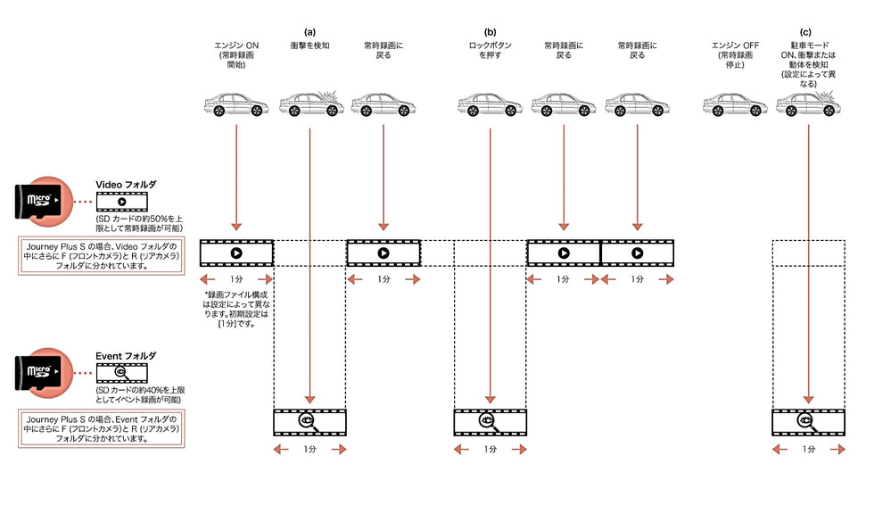 Journey S / Journey Plus S は駐車中も記録を行い、あなたの愛車を守る駐車モードには以下の種類があります。