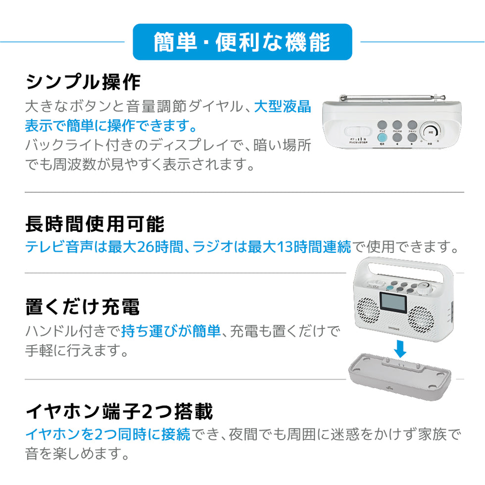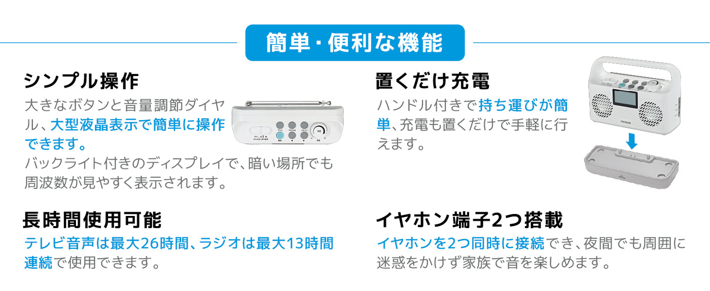 ■ 連続使用時間 ※1 : 約26時間 (テレビ音声)/約13時間 (ラジオ)