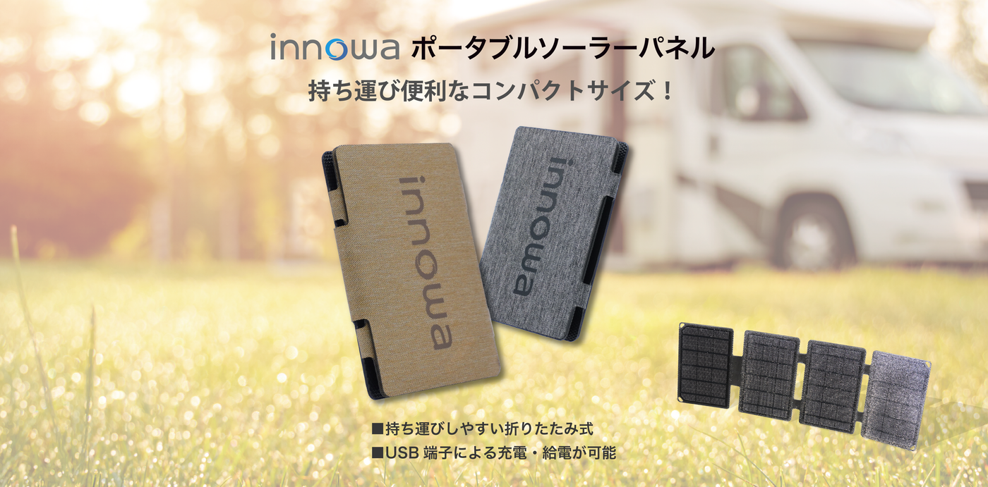 innowaポータブルソーラーパネルは、クリーンで使いやすいエネルギーを手軽に利用できる優れた製品です。太陽光を利用し、パネル性能12WでUSB-A出力は最大5V/2Aを実現。コンセントのない場所でもスマートフォンなどの充電が可能です。折りたたみ式で持ち運びも簡単で、キャンプや災害時には非常に役立ちます。
